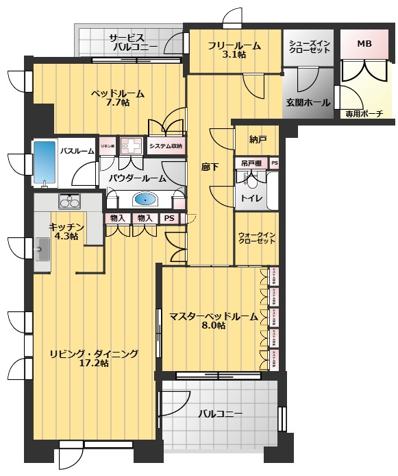 またバルコニー正面には桜の木もあり、春には満開の桜を眼前に花見も楽しめます。
