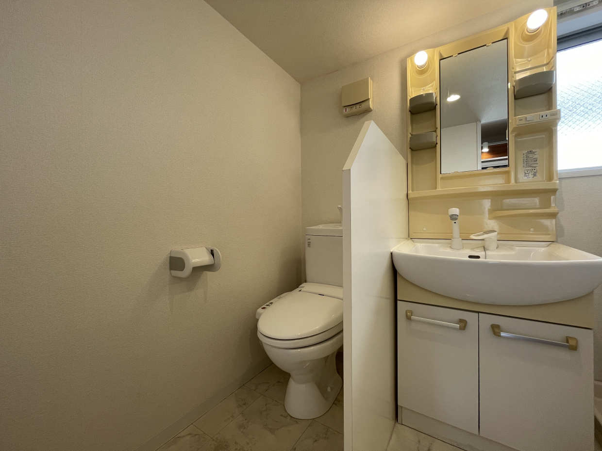 しかも頭上を見上げると折り畳み式の洗濯干しバーが設置されていて、雨の日でもここなら気兼ねなく洗濯物が干せる実用性に、思わず「なるほど」と感心してしまいました。