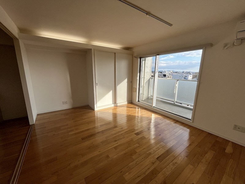 お部屋は7階の角住戸で、南向きのバルコニーから明るい光が差し込みます 。