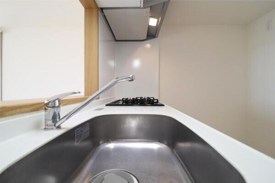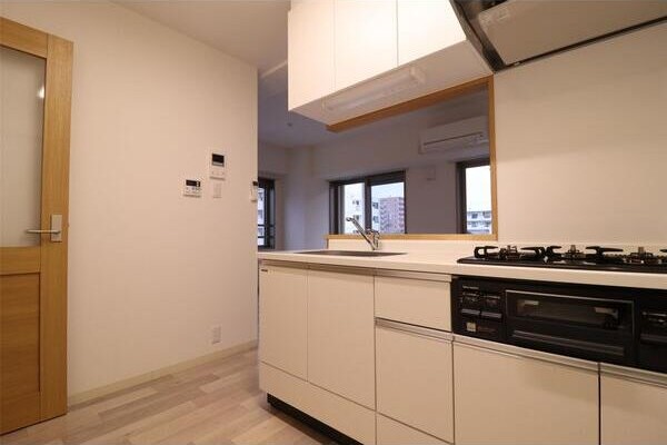 キッチンは対面式でリビングを見ながら調理ができ、開放的です。
