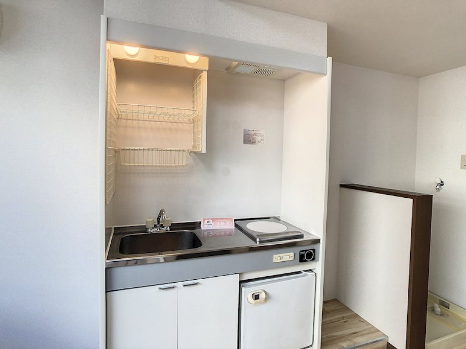 システムキッチンには2口コンロが備わっており、自炊派の方も満足できる設備が整っています。