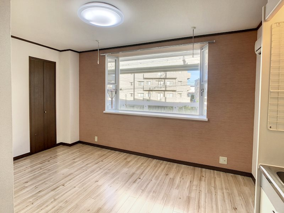お部屋のイチオシポイントはLDK。2つ並ぶ小さな小窓、対面式のキッチンなどこだわりポイントたっぷりです。
