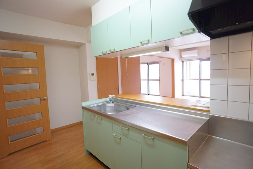 LDKには青色のキッチンがついています。