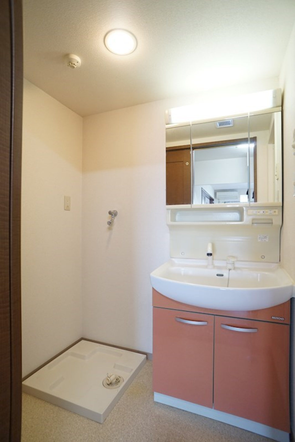 洗面台は独立洗面台ですが、キッチンの隣にあるので