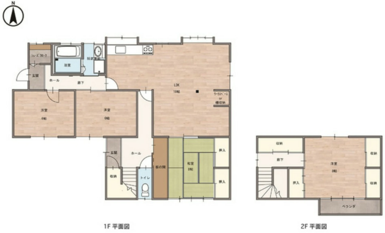 間取りは4LDK。和室も隣接されながら、18帖の広々LDKはリノベーションされていて、インテリアによってはモダンテイストに大変身。